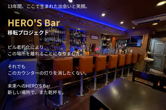 横須賀・大滝町で13年続く12席の小さなバー「HERO’S Bar」です。ビルの競売や設備の老朽化によりトイレが使えなくなり営業継続が難しくなりました。店を続け...