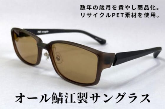 環境問題を憂いた鯖江の成型技術者がその技を最大限に活かし、高い成型技術が必要なリサイクルPET素材を用いたサングラスフレームを製造。更に鯖江のレンズメーカーが製...