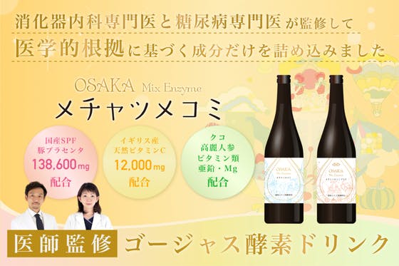 大阪生まれの大阪を愛する医師が、大阪名物ミックスジュースをイメージして、プラセンタやビタミンCの品質、厚生労働省の推奨基準値を参考にビタミン類の配合までこだわり...
