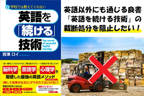 私が2012年に出版した書籍『英語を続ける技術』が7月末をもって、裁断処分されるという連絡を出版社よりいただきました。著者にとっては、子どものような存在である書...