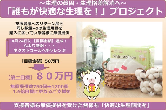 「生理の貧困」が大きな話題になっています。「生理の貧困」解消の為、皆さんの力をお借り出来ればと思います。ご支援頂き、リターン品としてお送りする生理用ナプキンと同...