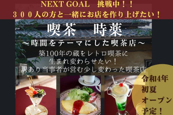 時間があらゆることを解決し、癒してくれる。そんな喫茶店を作りたい。小さい頃から、古くて温かみのあるものに囲まれた私は、築100年の蔵を改装してレトロな喫茶店を開...