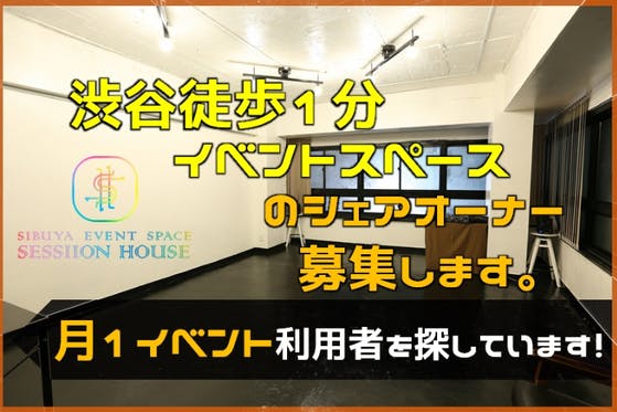 渋谷徒歩1分にある、イベントスペース【セッションハウス】のシェアオーナーを最大12名募集します。