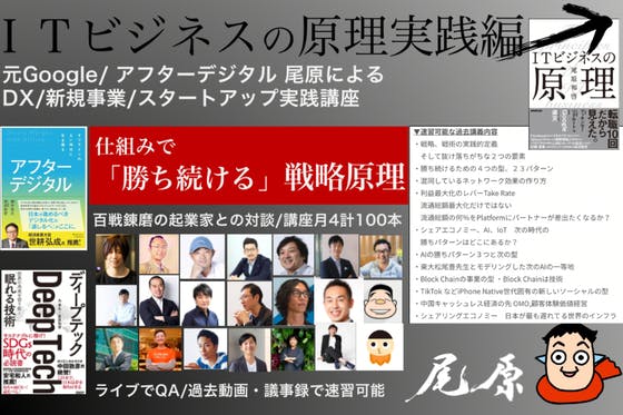 GPTなどAIやDX/スタートアップ/新規事業の実践オンライン講座元マッキンゼーGoogleアフターデジタル尾原の【毎月講座2本 起業家対談2本がライブで】【過...