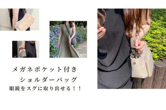 歩きながらや立ったままでも、片手でスッとさりげなく老眼鏡が出し入れできる、便利な機能付きショルダーバッグです。