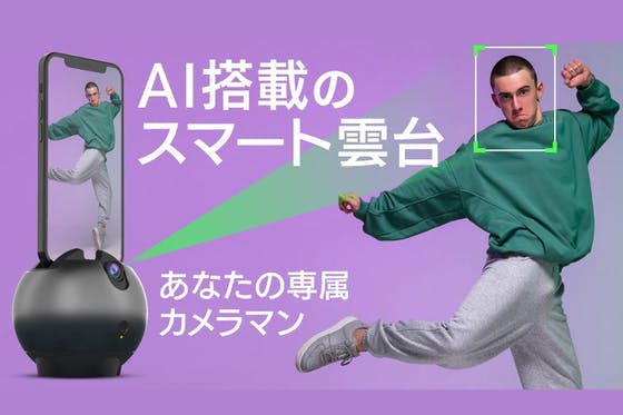 被写体の移動を上下左右に、水平方向360°の移動を顔認識して自動追跡してくれる動画撮影の新しいスマホ用ガジェット。AIビジョンセンサーによる顔認識機能で、自撮り...