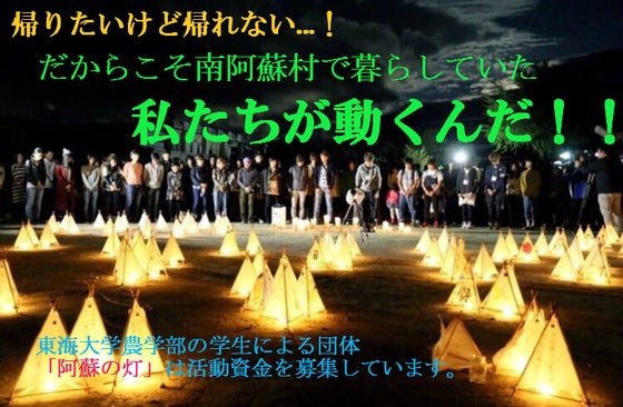 東海大学農学部生は震災により南阿蘇村から離れざるを得なくなりました。 私たち学生団体「阿蘇の灯」は南阿蘇村のためにできることを何かしたいという思いから様々な活...