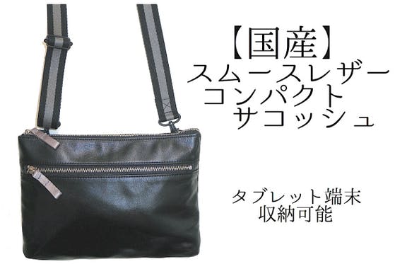 タブレット端末収納可能 国産スムースレザーコンパクトサコッシュ