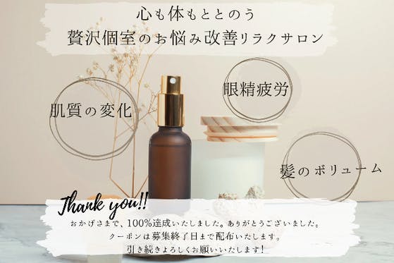 【目標達成!️】ご支援いただいている皆様、ありがとうございました。募集終了日までクーポン配布いたします!----個室で安心できる大人の隠れ場のようなサロンで、フ...