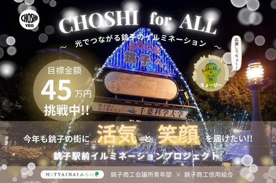 銚子の冬を光と笑顔でいっぱいにしたい!26年目を迎える銚子駅前イルミネーションをさらに活気あふれるものにするために今年もクラウドファンディングに挑戦します。あな...