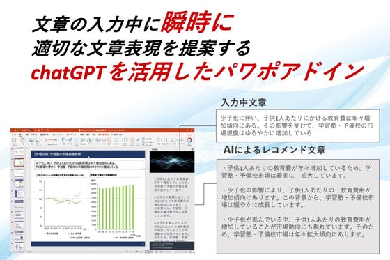 パワーポイントにて資料作成、文章を打ち込んでいる際に、 適切な文章表現をAIがリアルタイムに提案してくれるアドイン(拡張機能)を開発します。 アドインを使うこと...