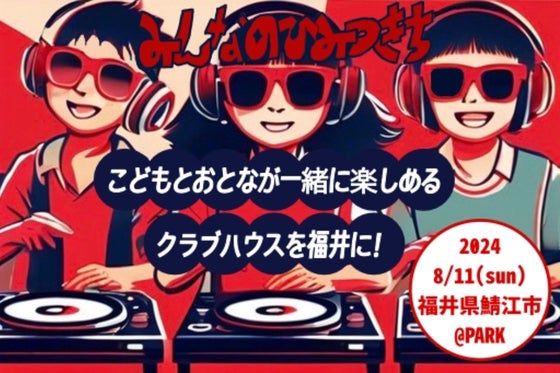 2024/8/11に福井県鯖江市河和田町でこどもからおとなまでみんなが参加できるクラブミュージックイベントを開催し、福井県のこどもたちが本物の音楽に触れられる機...