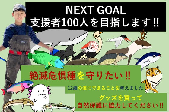 《NEXT GOAL支援者100人》僕は絶対、絶滅危惧種を守りたい! 絶滅危惧種のドジョウなどのグッズを買うと、自然保護団体の活動を支援することができる!