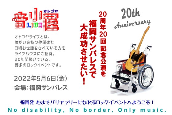 障害を持つ仲間たちを年に一度ライブハウスに招待して生バンドを楽しんで貰うロックイベント「音小屋チャリティーライブ」は2022年に20回目を迎えます。20年続く老...