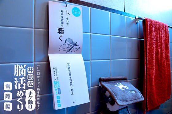 トイレに掛けて、毎日便座に座ってお題を実行するだけで 楽しく脳を活性化できる日めくりツール。