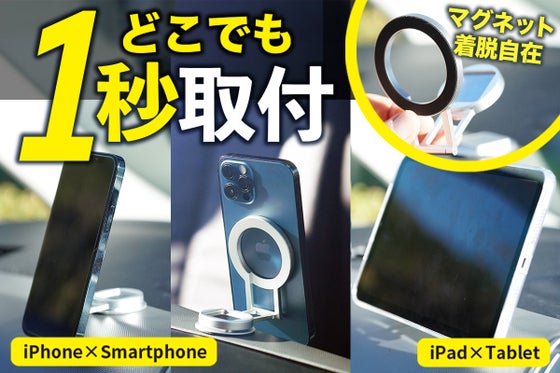 マグネットホルダーの多くは、一度車に取り付けると車内以外での利用ができません。別の場所でも、スタンドとして使えたらと思ったことはありませんか?本製品は、スタンド...