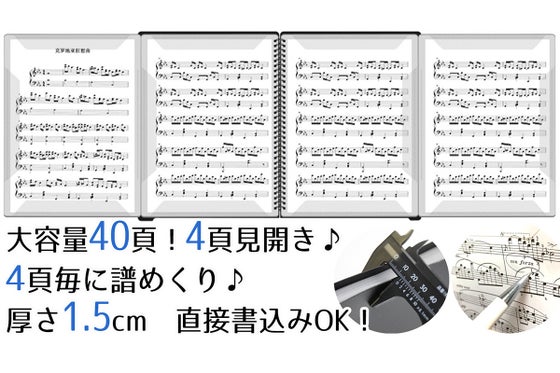【直接書込みOK&4頁見開き】大容量1冊に40頁保管可能。4頁まとめて譜めくりができます。 【差込7秒&取出1秒】素早く楽譜を出し入れ。縦横クリアストッパーで楽...