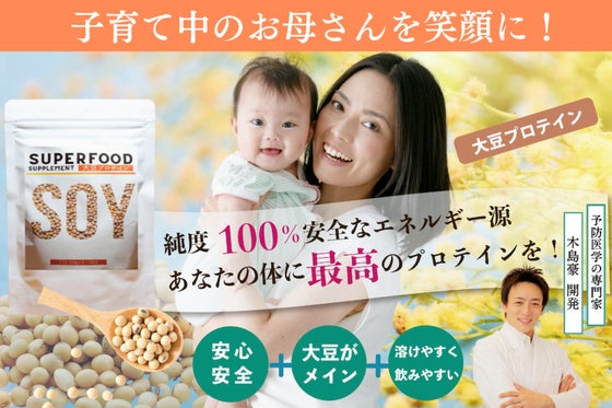 健やかな心と体を育む大切な要素『たんぱく質』を簡単に摂取できる大豆プロテイン。子育て中の忙しいお母さんたちに飲んでもらいたい。栄養摂取するだけでなく、病気予防や...