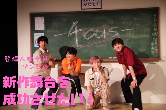 それぞれ個性の違う男4人が個性を生かした演劇チーム『-4cus-』新作舞台「ゾンビです。」の応援プロジェクトです!“演劇”を通して誰が観ても、楽しいエンタメ作品...