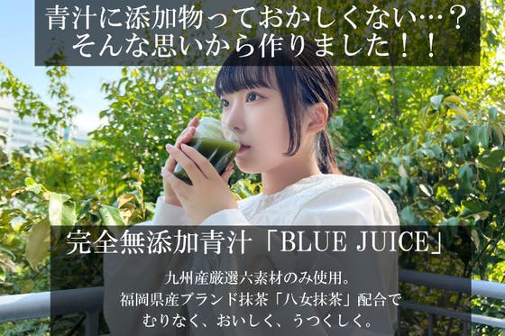 自社オリジナル商品である「BLUE JUICE」。 福岡県産天然素材のみでつくった美と健康をサポートする完全自然由来の青汁飲料です。 現在通販のみで販売している...