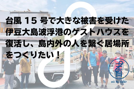 各地で猛威を振るった台風15号は、伊豆大島にも直撃し大きな爪痕を残しました。ゲストハウス「青とサイダー」も屋根が全面吹き飛ばされる等、大きな被害を受けました。現...