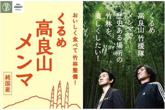 福岡県久留米市にある高良山を次世代へ繋ぐ為、荒れた竹林を整備します。堀り損ない2mにも伸びた竹の子は固くて不要な物とされてきたが、破棄せず美味しい純国産メンマを...