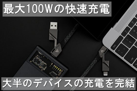 1つのケーブルで4種類の充電を可能に! 驚くほどの耐久性、車も引っ張ってもちぎれない! 洗練されたデザインを日常に。