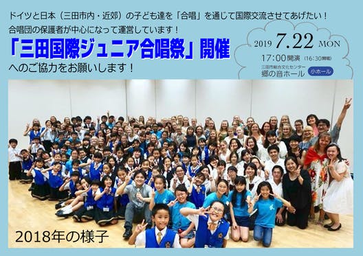「三田国際ジュニア合唱祭の開催」三田市内及び近郊の児童合唱団4団体約100名と、エストニアの「 エストニアラジオ放送児童合唱団」約40名、合計約150名の子ども...