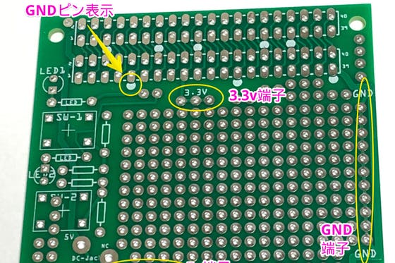特製ユニバーサル基板できました。タクトスイッチ2個、LED2個を実装出来るテスト用のRaspberryPi(ラズパイ)専用HATです。ラズパイ+ユニバーサル基板...