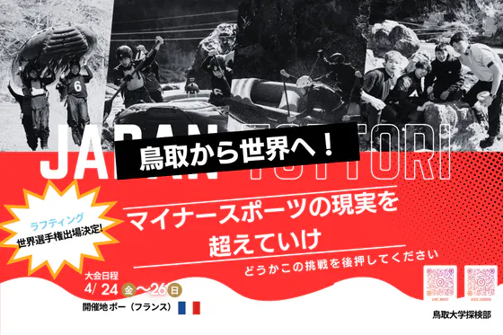 鳥取大学探検部の競技ラフティングチーム「Lino」「松風」は、2026年フランス・Pauで開催されるU23世界選手権へ出場します。学生だけでは渡航費・滞在費・現...