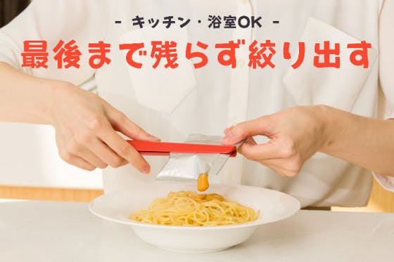 手を汚さず、力をかけずに。最後の一滴まできれいに絞れる ザ・スクイーザー2。小さなパウチから大きなパウチまでフィット。キッチン/バスルーム対応の4色、洗練デザイン。