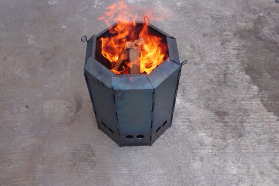 効率よく高い火力を生み出す、二次燃焼する焚き火台 分解、組み立てができ、持ち運びの便利なものを開発しました。