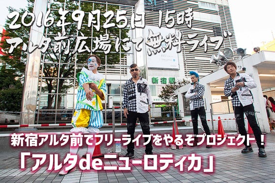 結成32周年を迎えたニューロティカが9/25(日)新宿アルタ前広場を借りて無料ライブを行うことを決定しました。その資金の支援をお願いするプロジェクトです。