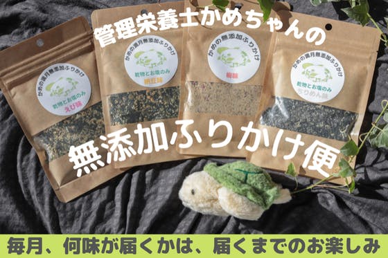 乾物と塩だけで作る無添加ふりかけ。さまざまな味から毎月2味お届けします。万能調味料にもなるふりかけの世界楽しんでみませんか?また、毎日の食事作りがラクになるヒン...