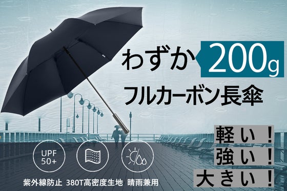 ❶ カーボンファイバーを採用した長傘で重量がわずか200g、驚きの軽さです! ➋「380T高密度撥水」の生地を使用、雨粒...