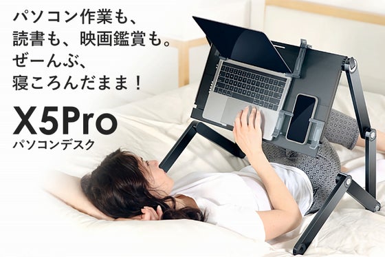 寝転んでパソコン作業が出来る!パソコンデスク「X5Pro」。進化した4本アームで抜群の安定性を実現。大きなクリップで、ノートパソコン、本、タブレット、スマートフ...