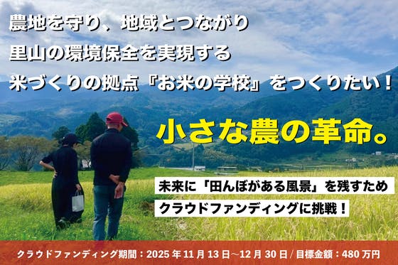 農地を守り、地域とつながり、里山の環境保全を実現するオーガニックのお米づくりの拠点『お米の学校』設立への挑戦!