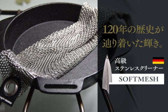 アウトドアでの使用や洗剤を使えないダッチオーブンにぴったり!高級ステンレス18-10を使用した、長く使えて手にもやさしいメッシュ型クリーニングクロスです。