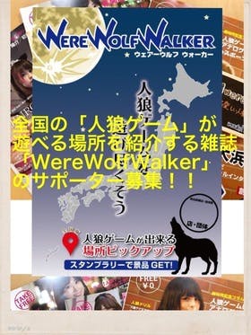 日本全国「人狼ゲーム」を体験することができる場所を紹介する雑誌「WereWolfWalker」の出版をするためのサポーターを募集致します。「月刊WereWolf...