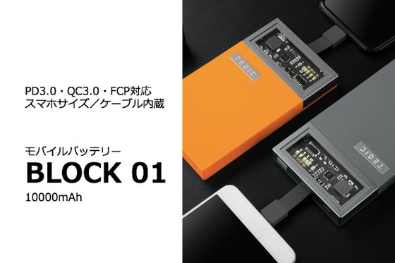 本物の回路が見える斬新で美しいデザイン性を追求したケーブル内蔵のモバイルバッテリーTEGIC『BLOCK 01』。『4in1充電ケーブル』TEGIC と併用すれ...