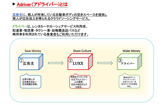 広告主に、個人が所有している自動車ボディの空きスペースを提供し個人が広告収入を得られるクラウドソーシングサービスの開発に皆様のご支援を賜りたく掲載させて頂きます...