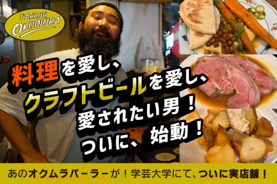 都内各地のクラフトビール給水所でゲリラ的に出店を行い、その界隈のファンも非常に多い流しの料理人「オクムラパーラー」が遂に!ホームタウンである学芸大学にて実店舗を...