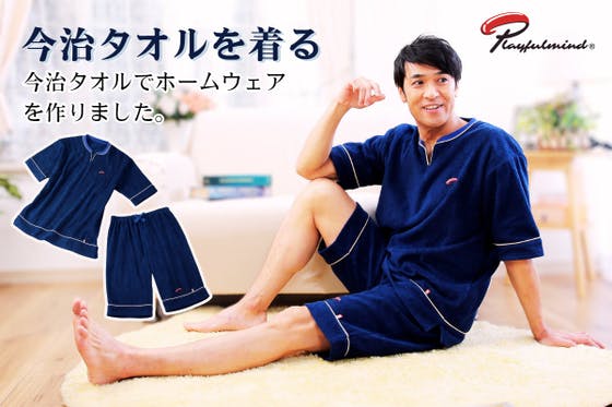 吸水性抜群で肌触りの良い「今治タオル」でメンズのホームウェアを作りました。 パジャマに見えないようデザインにもこだわりました。