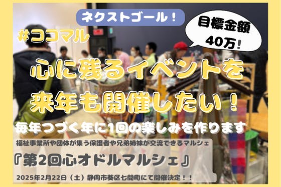【ネクストゴール】 『心オドルマルシェ』を来年も計画して、毎年続く、子どもたちが毎年楽しみになるイベントを開催していきたいです。 第2回心オドルマルシェは令...
