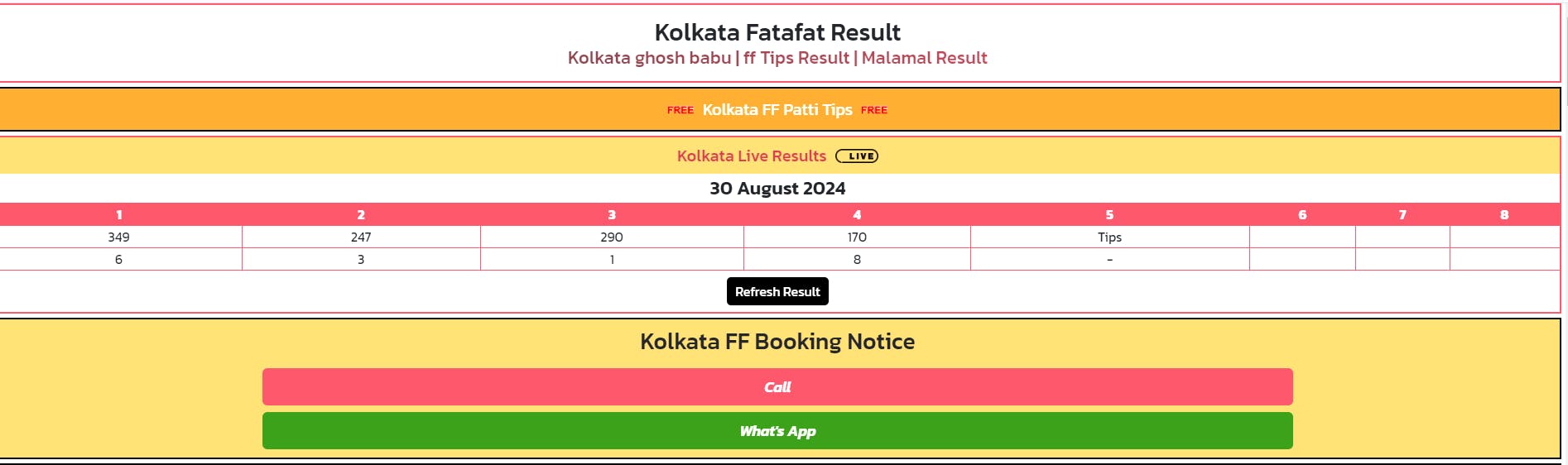 Want accurate insights for Kolkata FF Fatafat Results? kolkataresultff provides detailed and timely tips, giving you an edge over the competition. With our insights, you can make smarter decisions and significantly improve your gameplay. Join kolkataresultff for reliable and winning strategies today!