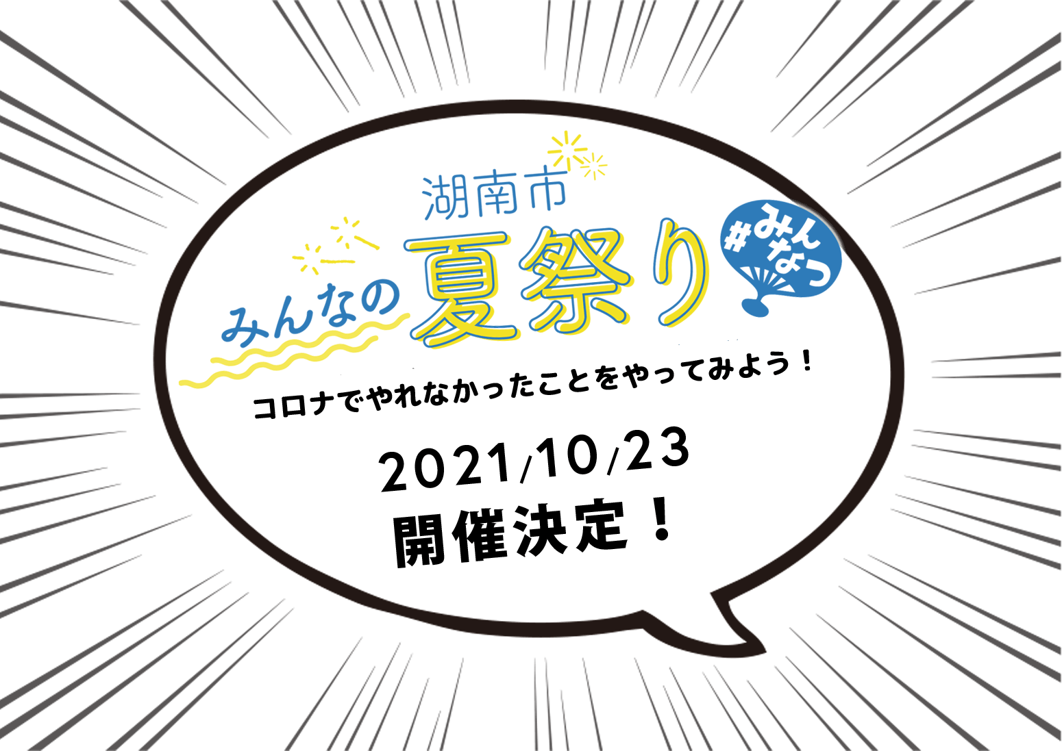 2020年に続き2021年も開催します!湖南市みんなの夏祭り。 コロナの時代でも行えるお祭りを湖南市から発信していきますので、どうぞお楽しみに!