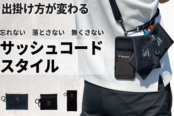 忘れ物を減らし、落とさない、無くさない。 カバンを持たず、両手も自由に。画期的なサッシュコードスタイルがここに完成しました。