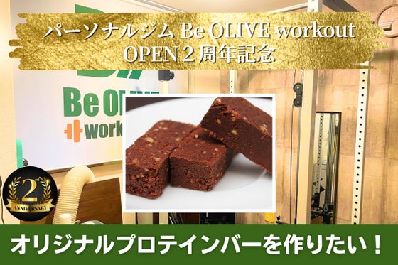 2025年6月にオープン2周年を迎えたパーソナルジム「Be OLIVE workout」をさらに勢い付けるため、オリジナルプロテインバーの製作をスタート!ココに...