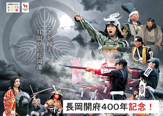 中高校生を中心に市民ら約500人が時代衣装を身にまとい、かつて長岡城があった中心市街地を大行列!! 「ときを越え、一日限りの長岡藩」、いざ出陣!!