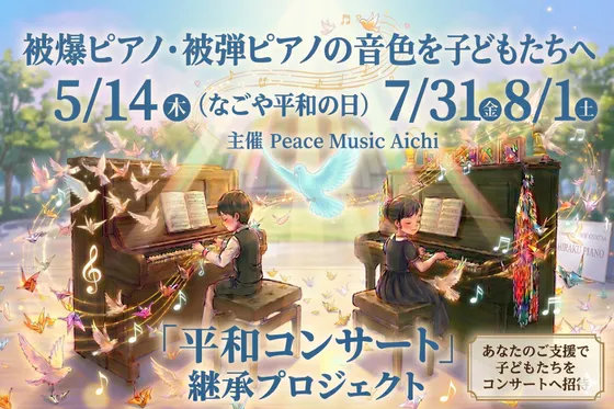 戦争の記憶を次世代へ繋ぐために、被爆•被弾ピアノの音色を通して、いきる希望や平和の大切さを継承する平和コンサート。 名古屋空襲の記憶を継承するなごや平和の日5...